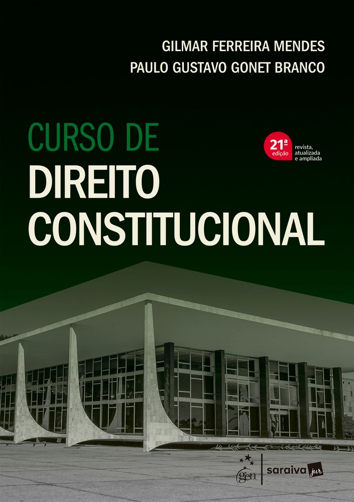 Premiado na categoria “Melhor Livro de Direito” da 50ª edição do Prêmio Jabuti, este Curso é resultado da parceria entre o Instituto Brasileiro de Ensino, Desenvolvimento e Pesquisa (IDP) e o selo Saraiva Jur. Atualmente em sua vigésima primeira edição, tornou-se, graças à colaboração de seus leitores, uma das obras mais prestigiadas do Direito Constitucional brasileiro.A fim de se perpetuar como referência para a formação acadêmica de estudantes e para a consulta por parte dos profissionais do Direito, esta edição foi totalmente revista e atualizada. O estudioso encontrará atualizações diversas que se referem a novos rumos da jurisprudência e aportes de reflexão jurídica, compreendendo também as decisões mais recentes do Supremo Tribunal Federal e dos Tribunais Superiores. Além disso, esta obra explora temas pouco desenvolvidos pela doutrina nacional, com o objetivo de propiciar ao leitor material sólido que municie sua visão crítica para aproximá-lo dos desafios mais prementes e relevantes da vida constitucional.O leitor perceberá, também, que a história profissional de cada Autor, paralela ao magistério, influi no trato objetivo das questões suscitadas. Gilmar Ferreira Mendes é Ministro do Supremo Tribunal Federal (decano). Paulo Gustavo Gonet Branco é Procurador-Geral da República atualmente.O selo Saraiva Jur e o IDP esperam que este livro motive novas vocações para o Direito Público e confirme e estimule as já existentes.