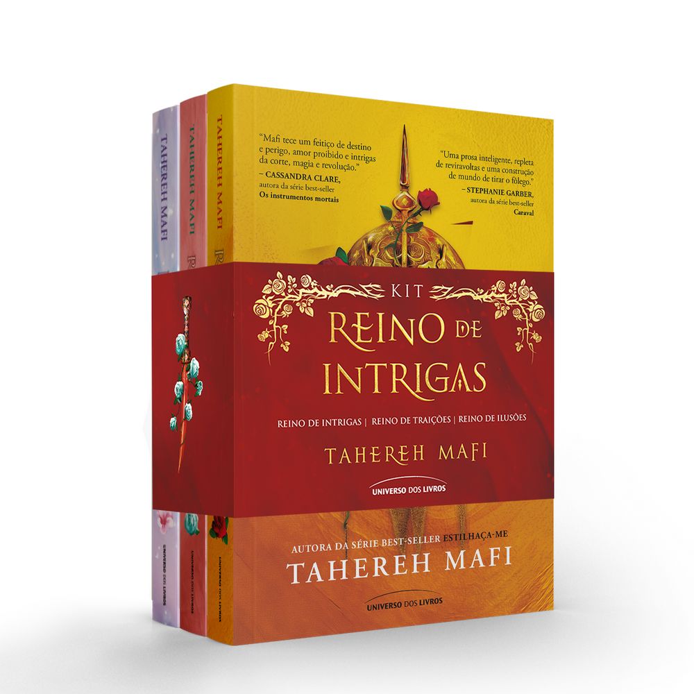 Uma romantasia épica inspirada na mitologia persa, onde impérios conflitantes, romance proibido, dragões ancestrais e profecias sombrias se entrelaçam — da autora Tahereh Mafi, a mente por trás da série best-seller Estilhaça-me! Reino de intrigas – vol. 1 Para todo mundo, Alizeh é uma serva descartável. O que não imaginam é que estão diante da herdeira há muito perdida de um antigo reino, forçada a se esconder à vista de todos. O príncipe herdeiro, Kamran, ouviu as profecias que previam a morte de seu rei. Mas ele nunca poderia imaginar que aquela criada de olhos estranhos, a garota que ele não consegue tirar da cabeça, pode, um dia, dominar seu reino – e o mundo. Reino de traições – vol. 2 Quando Kamran, o herdeiro do trono humano, se apaixona por Alizeh, ele é forçado a questionar tudo o que aprendeu sobre os jinn. Os muros entre eles desmoronaram, e o mesmo aconteceu com a vida de ambos. Agora, com o destino nas mãos de Cyrus, governante do reino de Tulan, Alizeh terá que decidir se pode deixar de lado suas emoções para se tornar a rainha de que seu povo precisa. Reino de ilusões – vol. 3 Como a herdeira perdida do trono dos jinn, Alizeh é a única capaz de salvar seu povo. Para isso, ela recebe uma proposta perigosa: casar-se com Cyrus e depois matá-lo, como mandam as profecias. Aceitar este noivado pode ser seu destino... mas também sua perdição. Conforme Alizeh e Cyrus se aproximam, a atração entre eles se torna inegável, e um sentimento tão poderoso quanto destrutivo surge entre os dois. Sobre a autora Tahereh Mafi e´ autora best-seller internacional, campeã de vendas do The New York Times e já foi indicada ao National Book Award, um dos mais importantes prêmios da literatura nos EUA. Ela tem mais de uma dúzia de livros publicados e suas obras já foram traduzidas para mais de trinta idiomas. Entre seus títulos estão a série Estilhaça-me e a série spin-off Estilhaça-me: A Nova República, a série Woven Kingdom, e os romances Oceano entre nós e Intensa – todos publicados no Brasil pela Universo dos Livros. Ela vive no sul da Califórnia com o marido, o também escritor Ransom Riggs, e a família deles.