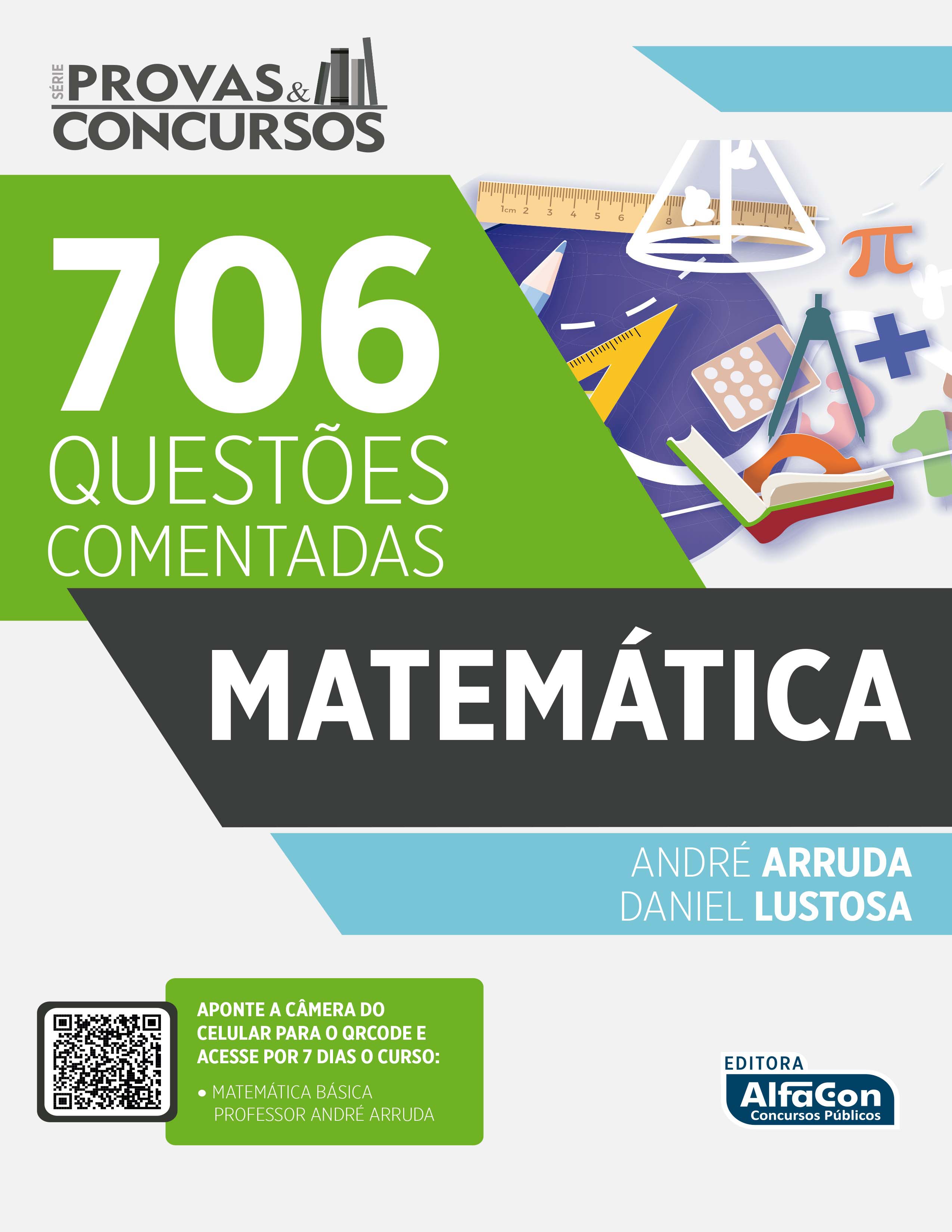 A OBRA Este livro foi concebido como ferramenta prática e objetiva para aqueles que se preparam para concursos públicos. Nele são abordados os principais assuntos cobrados pelas provas, bem como as questões mais relevantes para um estudo conciso. A 1ª edição apresenta mais de 700 questões, proporcionando um aprendizado consistente e atual. As questões são organizadas por temas e comentadas. Conteúdos contemplados: • Matemática básica. • Equações e inequações. • Funções. • Logaritmos. • Trigonometria. • Análise combinatória, probabilidade e teoria de conjuntos. • Sequências numéricas. • Matrizes, determinantes e sistemas lineares. • Geometria plana e espacial. • Geometria analítica. • Números complexos. • Polinômios. • Binômio de Newton. • Visualização de figuras espaciais em diferentes posições. • Matemática financeira. • Estatística descritiva. On-line: • 4 simulados comentados. • Resumo dos tópicos mais importantes. • APP Alfacon Notes.
