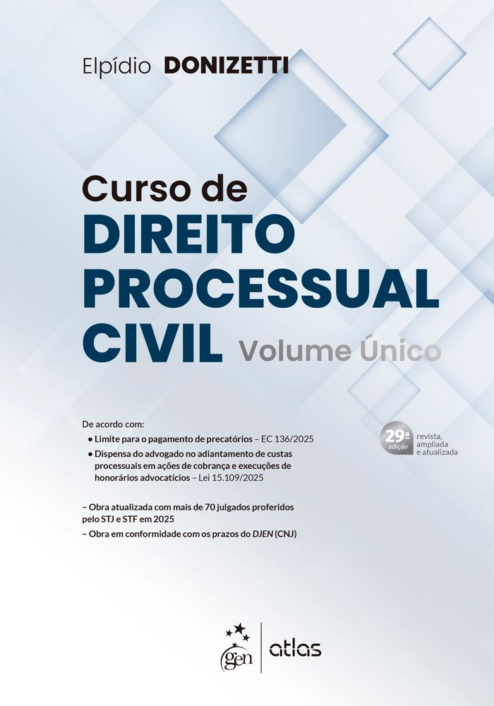 Este Curso traz as transformações do Direito Processual Civil com quadros esquemáticos desenvolvidos de modo didático e em volume único. Sem perder o foco e a profundidade e com linguagem simples e descomplicada, este livro apresenta, ao final de cada capítulo, a jurisprudência temática e as súmulas pertinentes, com a orientação dos tribunais acerca de determinada questão comentada. Além disso, comenta de forma aprofundada questões práticas essenciais para o dia a dia da advocacia. Elpídio Donizetti ainda buscou abordar o conteúdo na sequência de artigos estabelecida pelo CPC/2015 e, sempre que indispensável evidenciar a mudança, trouxe à tona o confronto entre o velho e o atual Código, sem, no entanto, se prender ao passado. Este livro tem a dimensão da necessidade e da urgência imposta pelo nosso tempo. Contém também a doutrina do atual Código como um todo, o que permite uma visão sistêmica do Direito Processual Civil, assim como a jurisprudência atualizada dos tribunais, especialmente STJ e STF.
