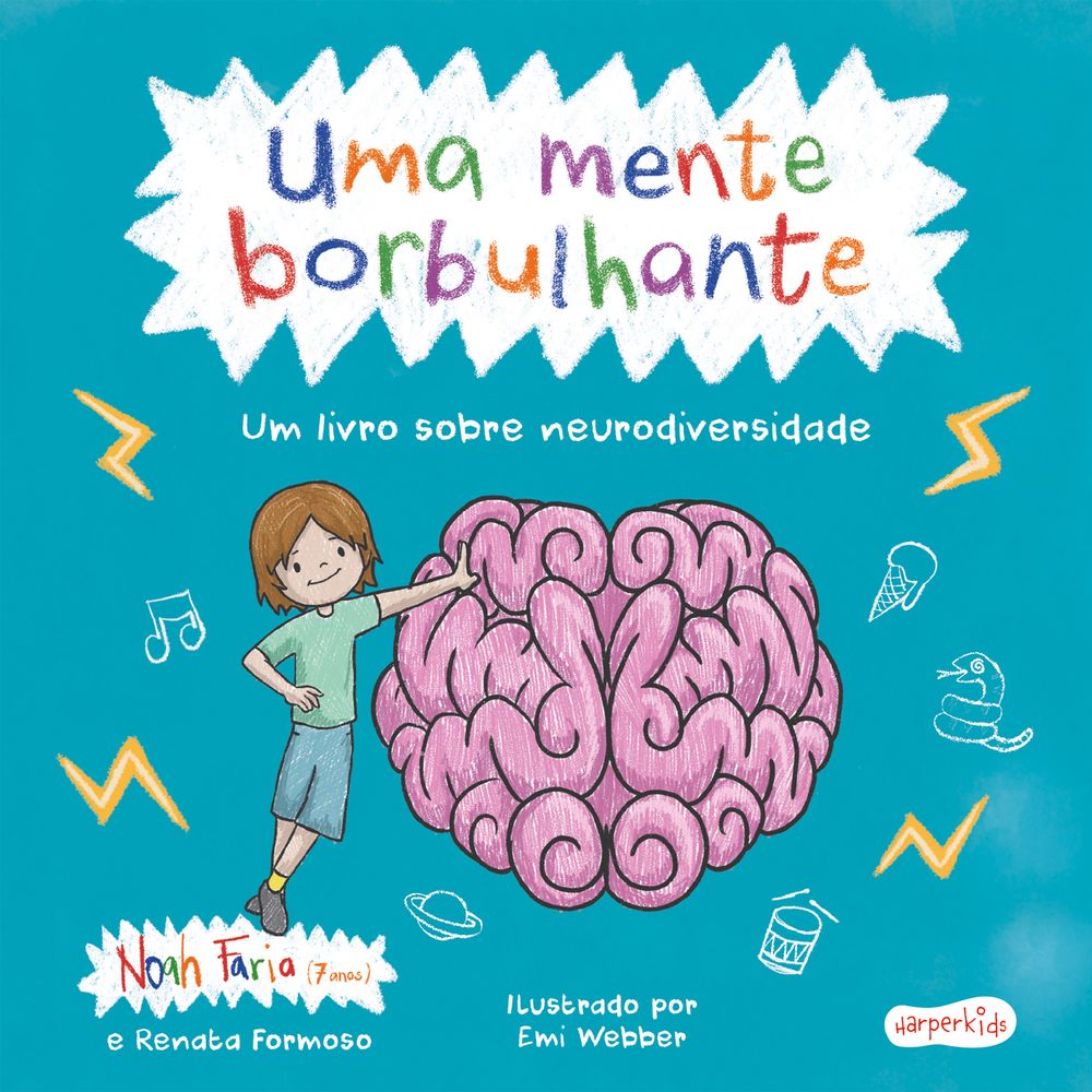 Uma mente borbulhante é uma história leve e divertida,escrita por uma criançade sete anos, coma ajudada sua mãe brasileira,que convida os pequenos leitores a conhecer, com empatia e carinho, o Transtorno do Déficit de Atenção com Hiperatividade (TDAH) e a neurodiversidade. Com delicadeza e sensibilidade, Noah descreve seu dia a dia em casa, na escola e suas descobertas pelo mundo,com a ajuda de sua mãe,revelando a experiência de um garotinho que aprende, pouco a pouco, a compreender seus pensamentos acelerados e a encontrar novas maneiras de se expressar e se entender. A história de Noah aproxima o leitor da vivência de uma mente neurodivergente, estimulando o respeito, a escuta atenta e o acolhimento das diferenças. Recomendado pelo Sistema Público de Saúde britânico a todas as crianças com diagnóstico deneurodivergência,Umamente borbulhante é uma obra sobre inclusão, aceitação e diversidade. Ao apresentar, de forma acessível e afetuosa, as múltiplas maneiras de ser e de perceber o mundo, o livro amplia o olhar de crianças e adultos sobre os diferentes funcionamentos do cérebro e reforça que ser diferente não é apenas natural — é também valioso. “O mais importante é que este livro fala a partir da voz de uma criança — e, por isso, ajudará tantas outras a perceber que não estão sozinhas em sua neurodiversidade, além de permitir que seus amigos as compreendam um pouco melhor.” — Dra. ClaireWicks, pediatra comunitária consultora do NHS