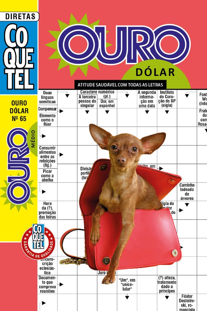 Um clássico moderno: o passatempo que combina desafio, diversão e saúde mental!Nível médio128 páginasDiversidade de passatempos: diretas, caça-palavras, caça-resposta, criptocruzadas, criptogramas, dominox, jogo dos erros, numerox, sudoku, torto, cruzadox, duplex, problema de lógica e muito mais.Ideal para adultos que buscam momentos de relaxamento com foco, concentração e estimulação cognitiva leve.O livroPalavras-Cruzadas Diretas Ouro Dólar Coquetelreúne o melhor dos passatempos clássicos em uma edição moderna e envolvente, perfeita para quem deseja exercitar o cérebro com leveza e prazer. Com 128 páginas e nível médio de dificuldade, esta coletânea inclui desafios variados como Palavras Diretas, Caça-palavras, Criptograma, Criptocruzada, Sudoku, Cruzadox, Dominox, Jogo dos Erros, Problemas de Lógica, Numerox e outros formatos que estimulam diferentes áreas do raciocínio. Ideal para adultos que valorizam o tempo offline, querem manter a mente ativa e buscam uma alternativa saudável à rotina digital. Com a curadoria editorial da Coquetel, sinônimo de tradição e qualidade, esta edição é uma ótima escolha para leitores que desejam relaxar com inteligência e diversão.