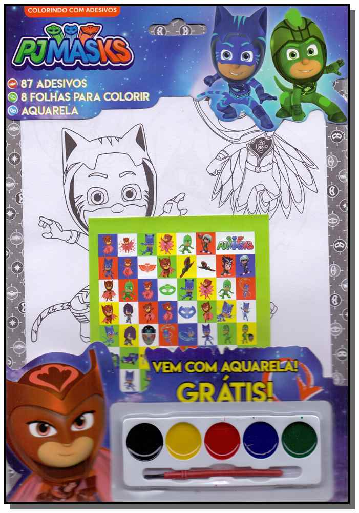 Venha descobrir um pouco mais sobre o universo dos heróis Pj Masks! Há muitas atividades e desenhos de toda a turma para você colorir usando suas cores favoritas! Com adesivos para você colar no livro ou onde quiser!