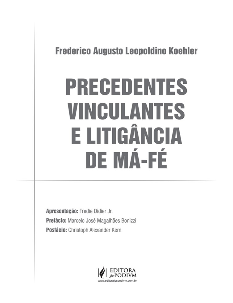 A obra que vem a público é um importante alicerce para o modelo de precedentes que estamos tentando construir, coisa que o futuro leitor, mesmo se for ainda estudante de graduação, perceberá logo nas primeiras páginas.