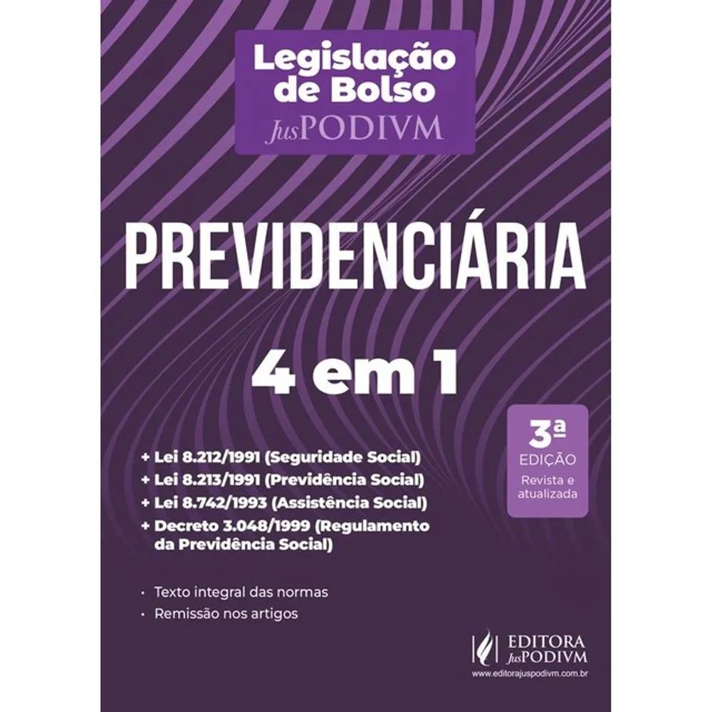Este volume conta com as Leis 8.212/1991 (Lei Orgânica da Seguridade Social), 8.213/1991 (Lei de Benefícios da Previdência Social) e 8.742/1993 (Lei Orgânica da Assistência Social – LOAS) e com o Decreto 3.048/1999 (regulamento da Previdência Social), normas fundamentais para o estudo do Direito Previdenciário.